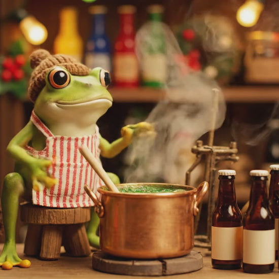 Det lackar så smått mot jul. Även om det är någon månad tills dess har grodan det fullt upp med att brygga julölen så den blir klar lagom till jul.